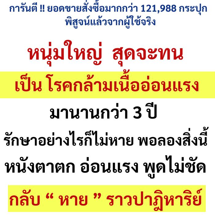 พอได้รับสินค้าผมก็ทานตามที่ผู้เชี่ยวชาญแนะนำ ทานไปได้ 7วัน เชื่อไหมครับอาการที่ผมเป็นดีขึ้นอย่างชัดเจน รู้สึกสดชื่นขึ้น ผมทานต่อเนื่องสักพัก อาการ ต่าง ๆ ที่ผมเป็นดีขึ้น มีเรี่ยวแรงขึ้น และอาการของโรคกล้ามเนื้ออ่อนแรง ก็ดีขึ้นเรื่อย ๆ จนคนรอบข้างทัก ผมทานต่อเนื่องจนร่างกายกลับมาเป็นปกติ ผมดีใจมาก ๆเลย