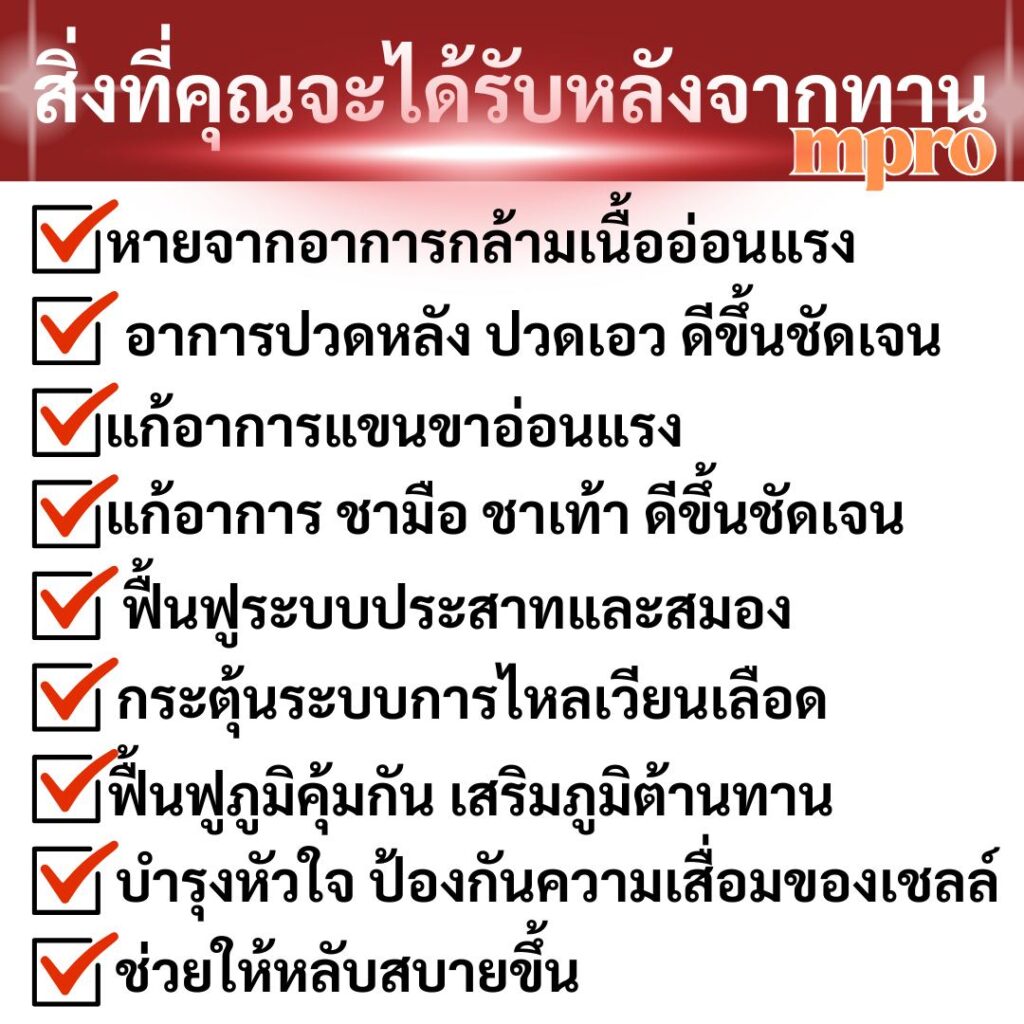 พอไปหาหมออาการก็เหมือนจะดีขึ้นแต่ก็ยังคงเป็น ๆ หาย ๆ อยู่ไม่หายขาดครับ เป็นแบบนั้นอยู่ก็หลายปี ผมก็รักษาตามอาการไป ทั้งไปกายภาพบำบัดฟื้นฟูกล้ามเนื้อ ทานยาจนหน้าบวม หาวิตามินต่าง ๆ มาทาน เป็นแบบนั้นไม่หายขาด มีช่วงที่หนักมาก ผมถึงขั้นหายใจไม่สะดวกขยับตัวไม่ได้ ต้องหามส่งห้องฉุกเฉินเลยครับ ผมกลัวมาก ๆ จนวันนึง เพื่อนผมมาเยี่ยมและได้แนะนำผลิตภัณฑ์ตัวนึงให้ผมลองทาน ลุงของเขาก็หายเพราะทานตัวนี้ เอาจริง ๆ พอฟังผมก็ยังลังเล แต่ก็ลองเชื่อเพื่อนดู เลยเข้าไปลองหาข้อมูลในเน็ตดู ชื่อ เอ็มโปร MPRO เป็นสารสกัดจากะรรมชาติ 100% รักษาฟื้นฟูที่ต้นตอ ปลอดภัย มีรีวิวจากผู้ใช้จริง และรับรองจาก อย. ครับ