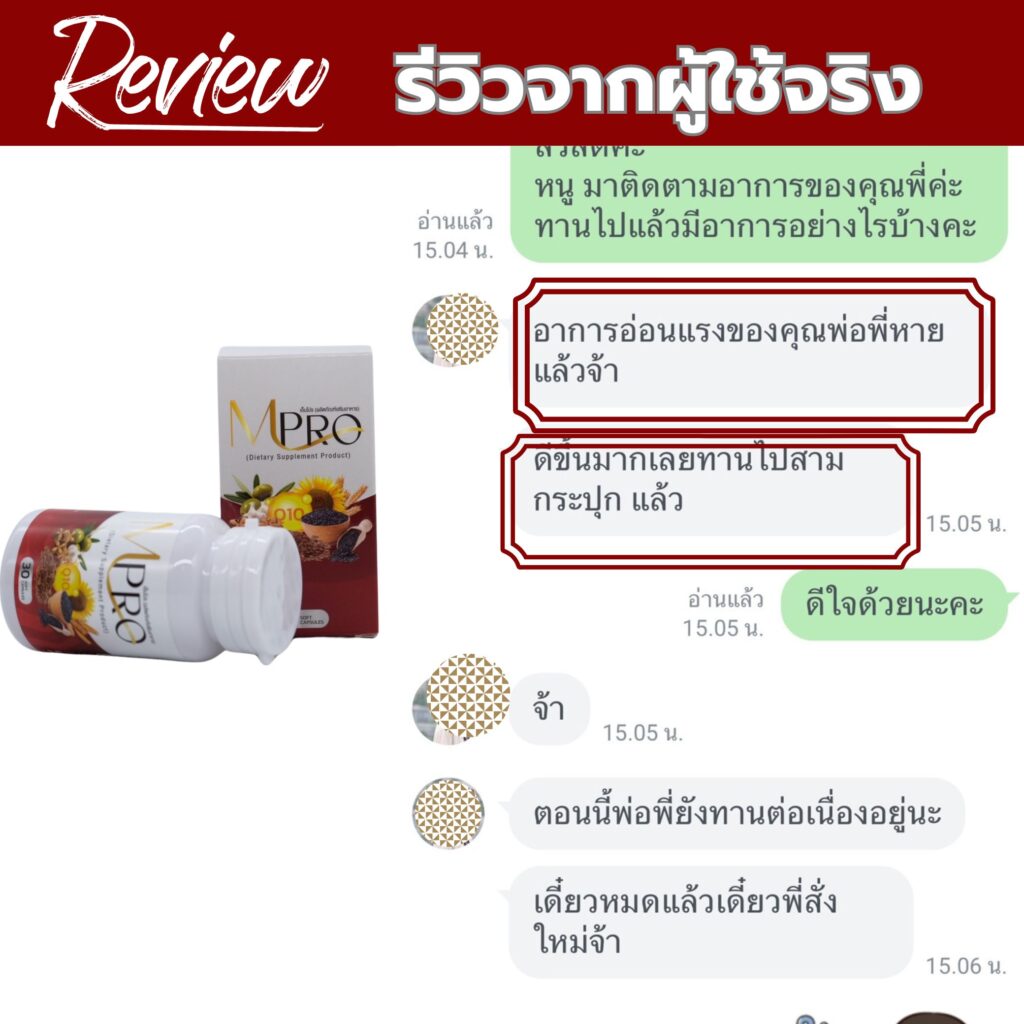 และตอนนี้ร่างกายของผมก็กลับมาเป็นปกติแล้ว รู้สึกว่าร่างกายแข็งแรงขึ้น เพื่อน ๆ น้อง ๆ คนไหนมีปัญหาแบบผมอยู่อย่าลังเลเลยครับ รู้เร็ว รักษาเร็ว หายเร็ว ไม่เสี่ยงกับภาวะแทรกซ้อน ด้วยเพราะโรคนี้อันตรายจริง ๆ จากใจคนที่เคยมีอาการ ผมแนะนำเลยครับ เอ็มโปร MPRO ต้องขอบคุณเพื่อนผมที่แนะนำสิ่งดี ๆ ให้ ผมเลยอยากแนะนำต่อ และตอนนี้ผมยังทานต่อเนื่องอยู่ครับ อย่าปล่อยไว้นานครับจากใจคนที่เคยทรมานจากโรคนี้มาก่อน