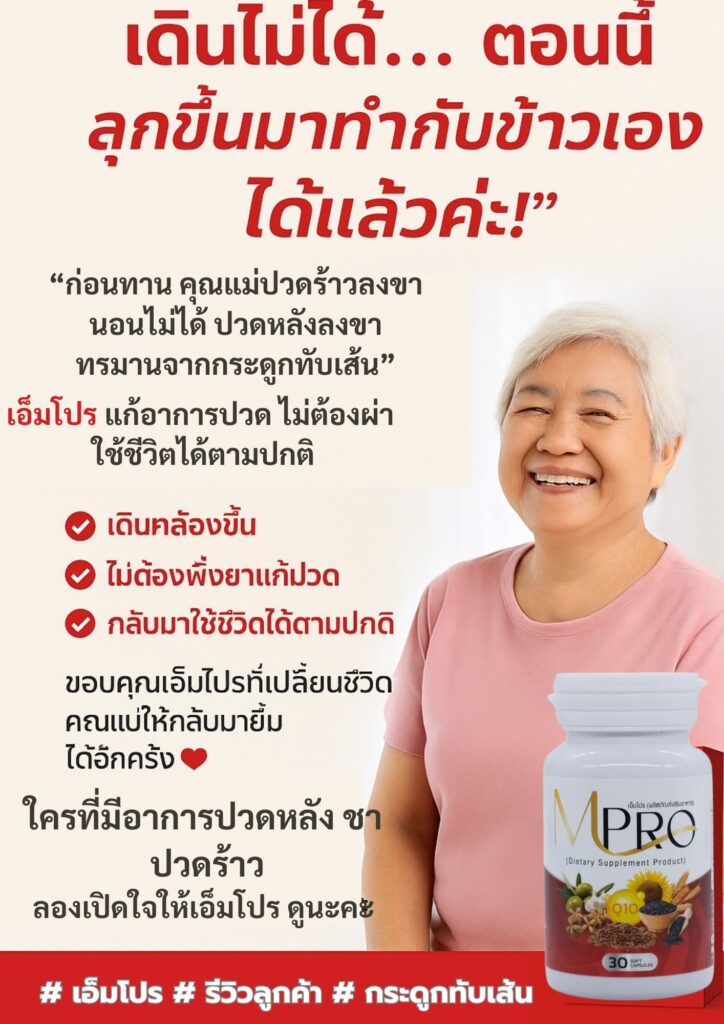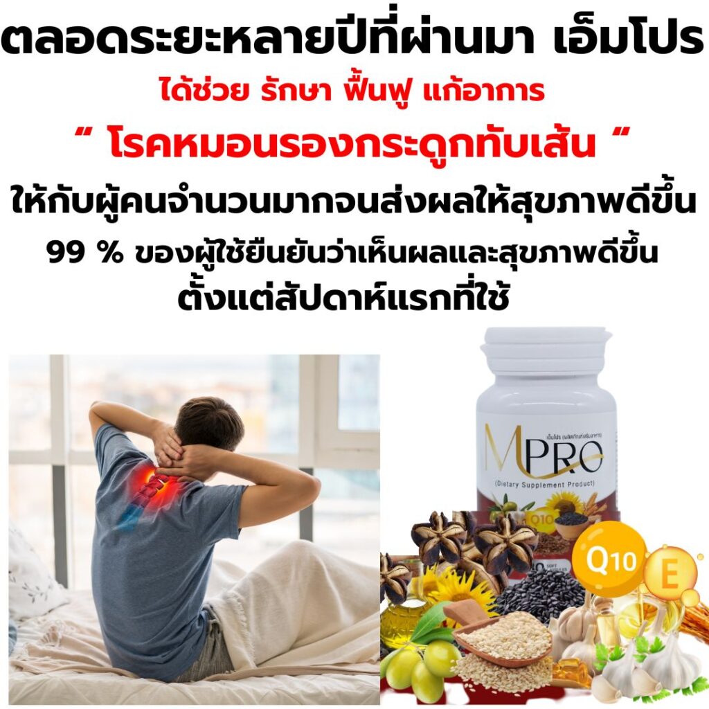 พอไปหาหมออาการก็เหมือนจะดีขึ้นแต่ก็ไม่หายสักทีอาการก็กลับมาเป็น ๆ หาย ๆ แบบนั้นอยู่หลายปี หมดค่ารักษาไปเยอะทั้งไปทำกายภาพบำบัด ทั้งรักษาฝังเข็มก็ไม่ดีขึ้นทรมานมากๆ อาการปวดมากขึ้นเรื่อย ๆ ขยับลำบาก เดินเสียการทรงตัวเลย ท้อเลยครับกลัวตัวเองจะเป็นอัมพาต จนวันนึงแฟนผมลองหาข้อมูลเกี่ยวกับการรักษาอาการหมอนรองกระดูกทับเส้นในเน็ตก็ได้เจอกับผลิตภัณฑ์ตัวนึง ชื่อ เอ็มโป ตัวนี้ป็นสารสกัดจากธรรมชาติ 100% เอ็มโปร MPRO ช่วยรักษาอาการจาก โรคหมอนรองกระดูกทับเส้น ปลอดภัยไร้ผลข้างเคียง มีรีวิวจากผู้ใช้จริง และที่สำคัญมีการรับรองจาก อย